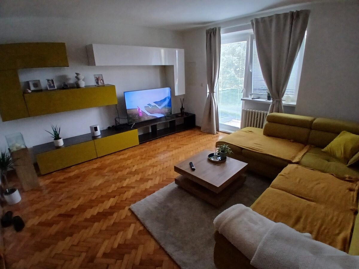 Byt sa nachádza na 1. poschodí, patrí k nemu záhrada a samostatne stojaca garáž. Je kompletne zariadený – nová kuchyňa so špajzou (dostatok úložného priestoru), nová umývačka riadu, nová práčka, nový televízor, rozkladací gauč a množstvo ďalšieho vybavenia.