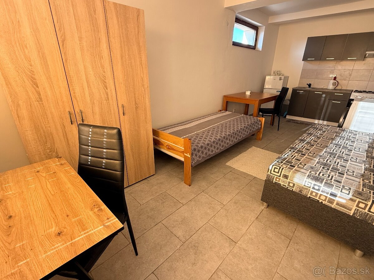 Garsónky s výmerou 40 m² sú kompletne zariadené a pripravené na okamžité nasťahovanie. Každá má vlastnú kúpeľňu s WC a kuchynský kút, čo poskytuje plné súkromie a komfort bývania.