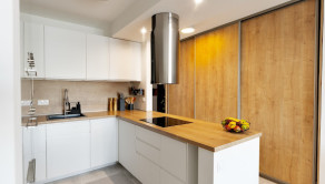 Byt sa predáva kompletne zariadený nábytkom vyrobeným na mieru z kvalitných materiálov.