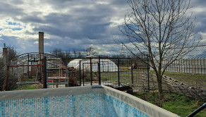 Na pozemku je skleník, garáž a menšie budovy určené na skladovanie.
