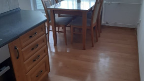 chladnička, práčka, kuchynská linka, jedálenský stôl, sporák, umývačka riadu, písací stôl, ... obývacia izba je nezariadená.
