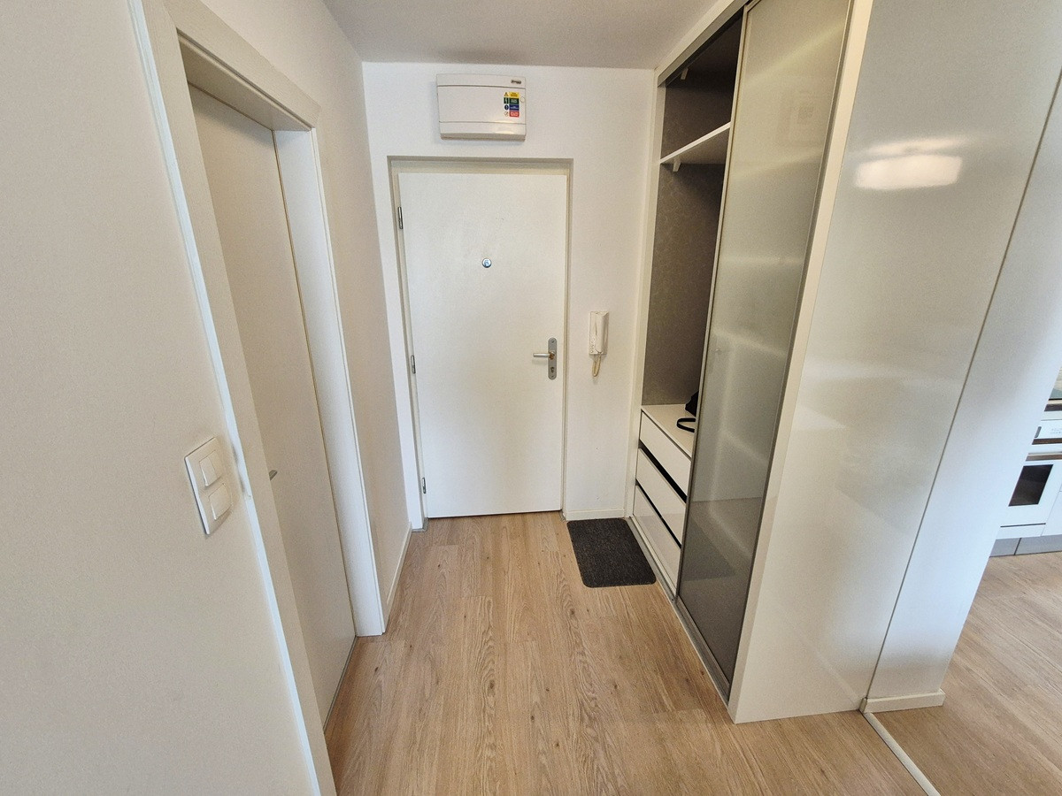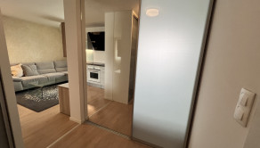 - Vstupná chodba so vstavanou skriňou elegantne rieši úložný priestor hneď pri vstupe bez toho, aby narúšala vzdušnosť interiéru.