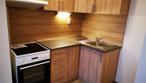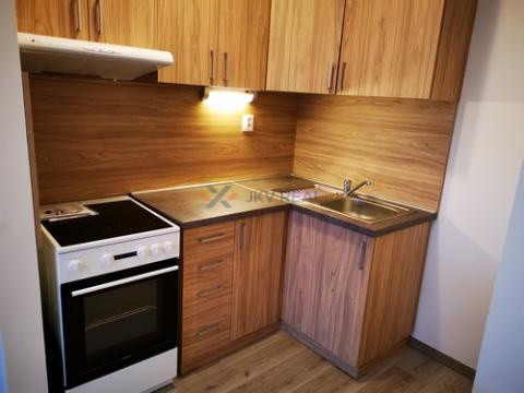 Je nezariadený, má vstavanú kuchyňu, sprchový kút a samostatné WC.