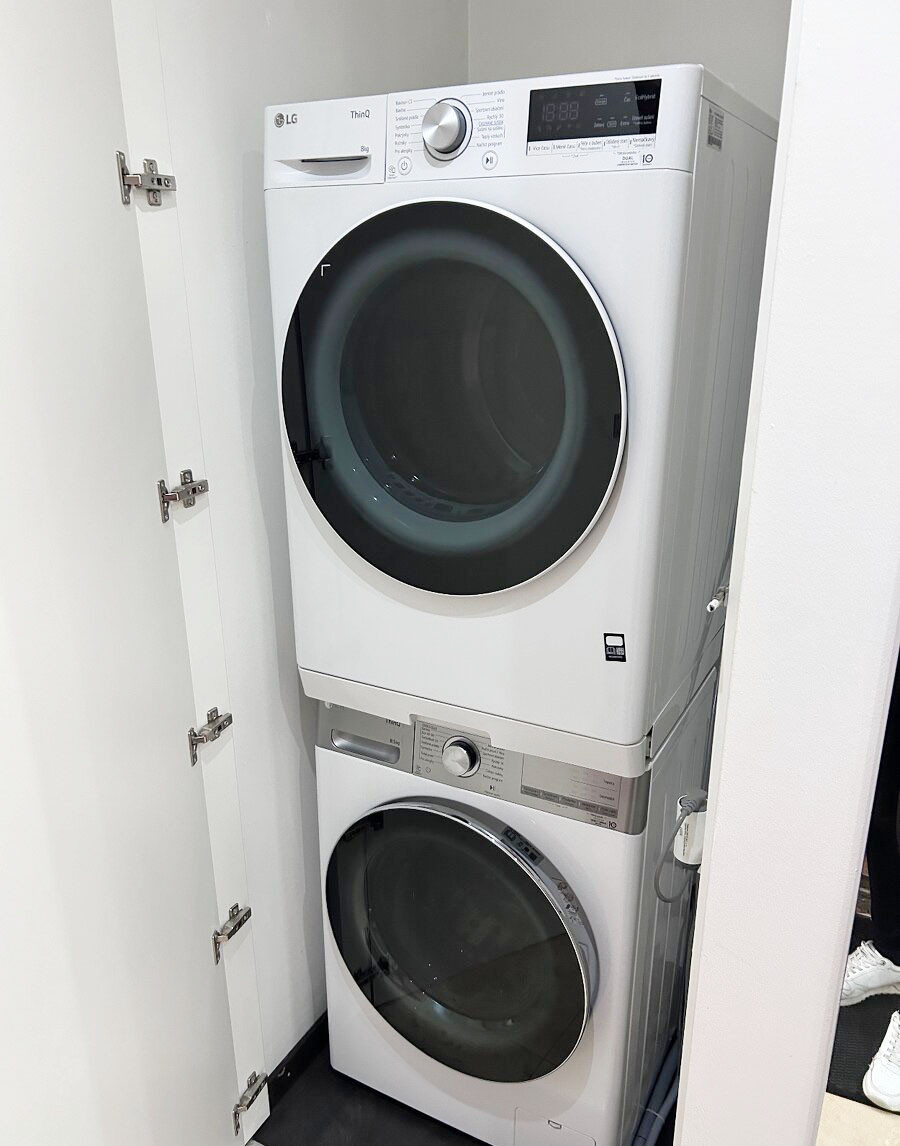 K dispozícii sú všetky potrebné spotrebiče vrátane práčky a – čo je veľkým bonusom – aj samostatnej sušičky.