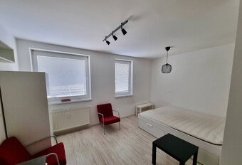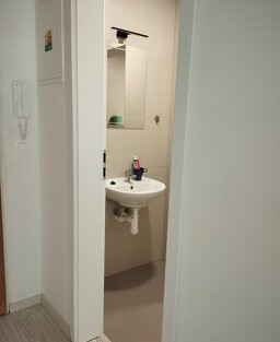 Byt pozostáva : vstupná chodba, kuchyňa rohová priestranná, izba,kúpelňa s WC, veľký nástenný sušiak, v predsienke súčasť kúpelne umývadlo. Byt je bez balkóna a bez pivnice. Zariadenie na fotke je súčasťou prenajímaného bytu.