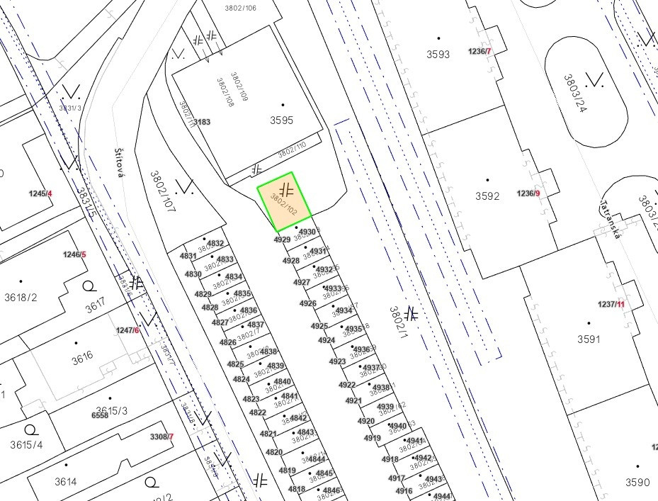 Ponúkam na predaj pozemok určený na výstavbu garáží v lokalite Košice – Staré Mesto, k.ú. Huštáky, ulica Štítová.