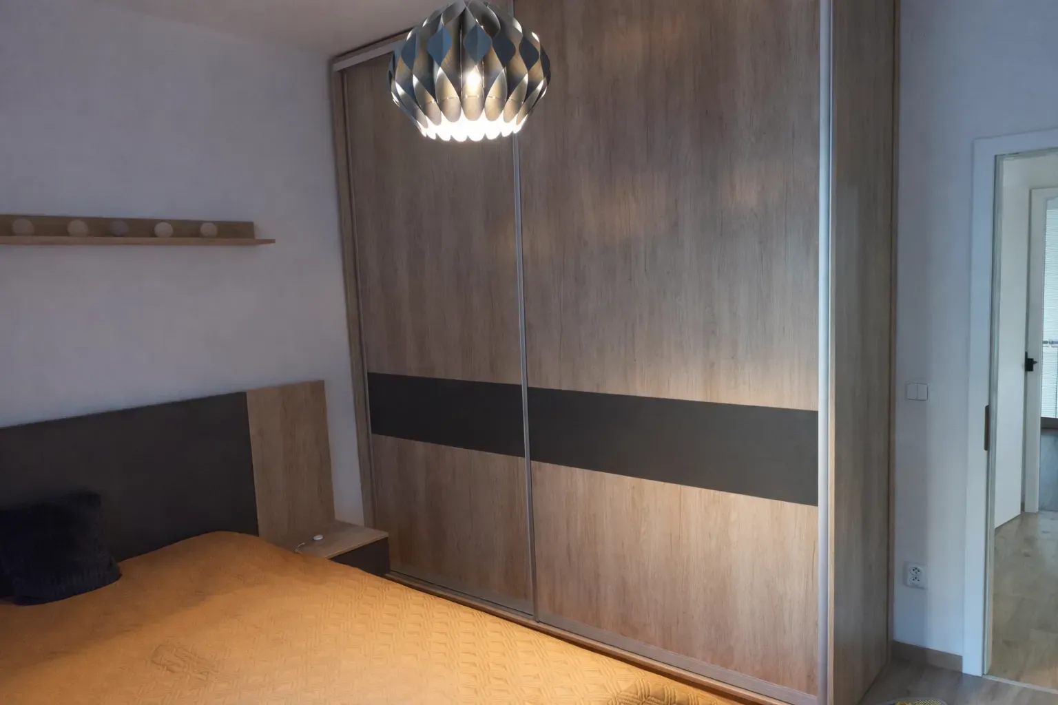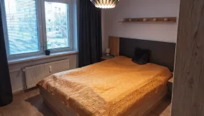 - samostatná spálňa s veľkou manželskou posteľou, vstavanou skriňou a oknom do vnútrobloku