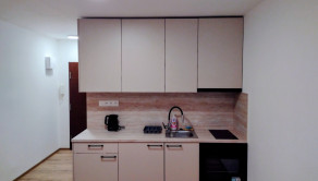 Vstupná chodba,kupelňa s toaletou,obývací priestor s kuchyňkou,podlahové plochy plávajúce s podlahovým kúrením.Kuchyňská linka vybavená el.spotrebičmi, varná doska,rúra,digestor.Bespečnostné dvere.