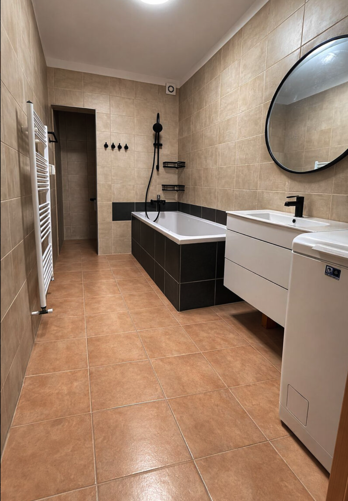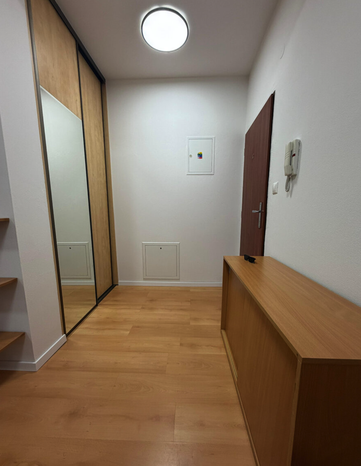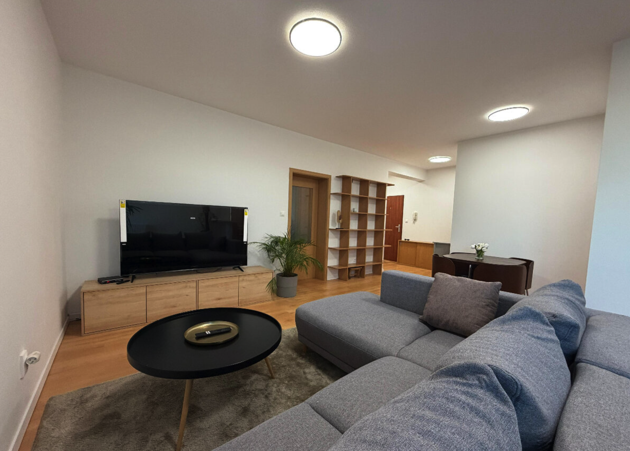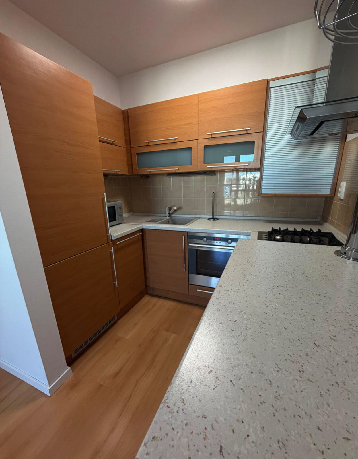 byt sa prenajíma kompletne zariadený a pripravený na nasťahovanie. V chodbe sa nachádza rolldorová skriňa. Kuchyňa je vybavená vstavanými spotrebičmi (umývačka riadu, chladnička s mrazničkou, elektrická rúra, plynová varná doska, mikrovlnná rúra). V obývacej časti je jedálenský stôl so stoličkami, gauč, TV skrinka a Smart TV (65"). Spálňa disponuje manželskou posteľou (180 × 200 cm) s nočnými stolíkmi a rolldorovou skriňou. V kúpeľni sa nachádza práčka. K dispozícii je tiež vysávač, mop, sušiak na prádlo, zatemňovacie závesy, záclony a sieťky proti hmyzu.