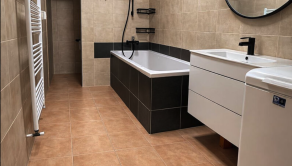 vstupná chodba, kúpeľňa s vaňou, samostatné WC, kuchyňa spojená s obývačkou, spálňa, lodžia.