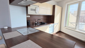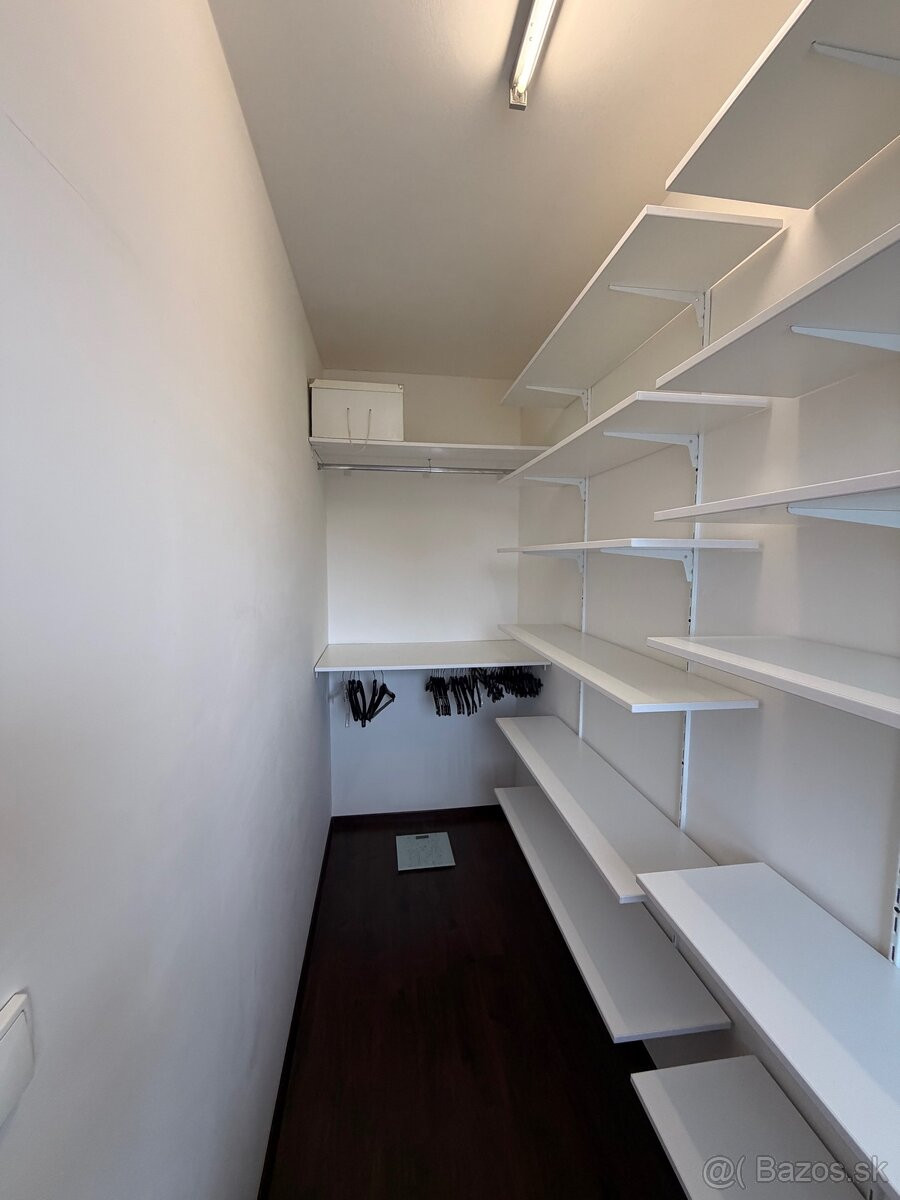 Je plne zariadený (práčka, chladnička, umývačka riadu, rúra, mikrovlnka, chladnička na víno, 2× TV) a pripravený na okamžité bývanie.