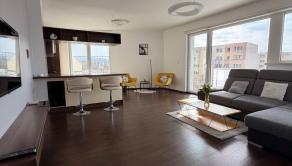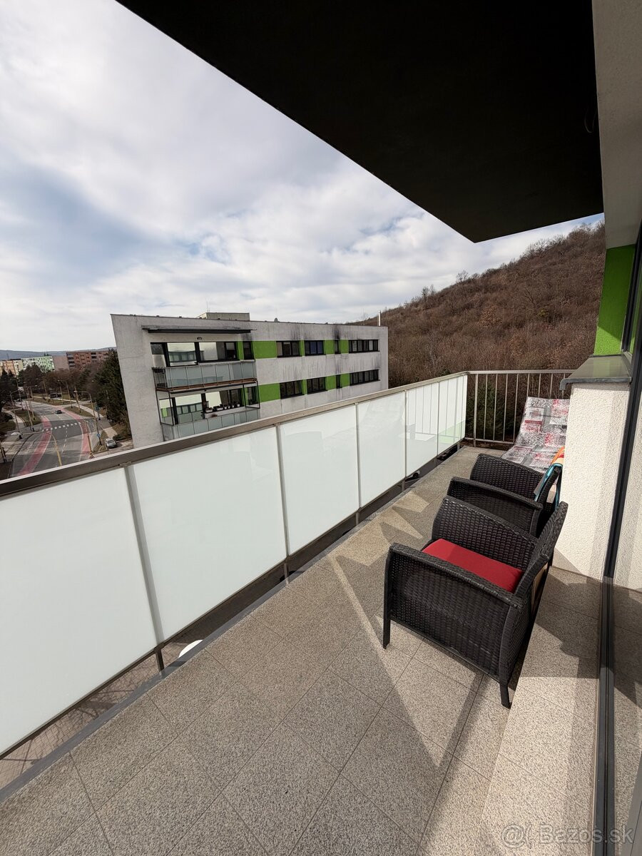Byt má 72 m², nachádza sa na 5. poschodí s výťahom a disponuje veľkým balkónom a vlastným parkovacím miestom.