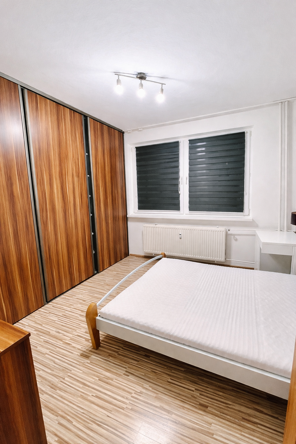 v chodbe a spálni vyhotovené vstavané skrine, chladnička, práčka, manželská posteľ.