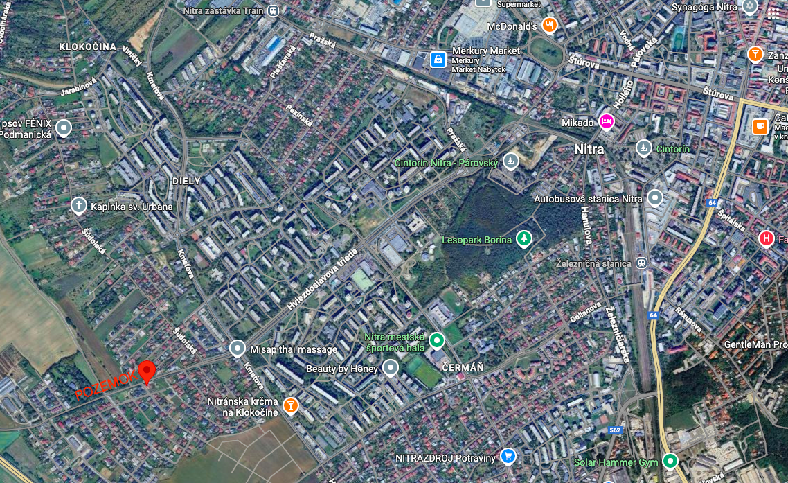 Lokalita, kde sa pozemok nachádza je priamo v Nitre, prakticky na vrchu mestskej časti Klokočina. Prístup do samotného centra mesta je rýchly cca. 10 min. autom. Pár krokov od domu je zastávka MHD.