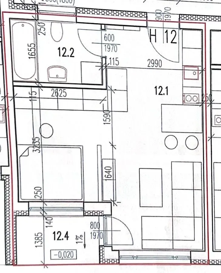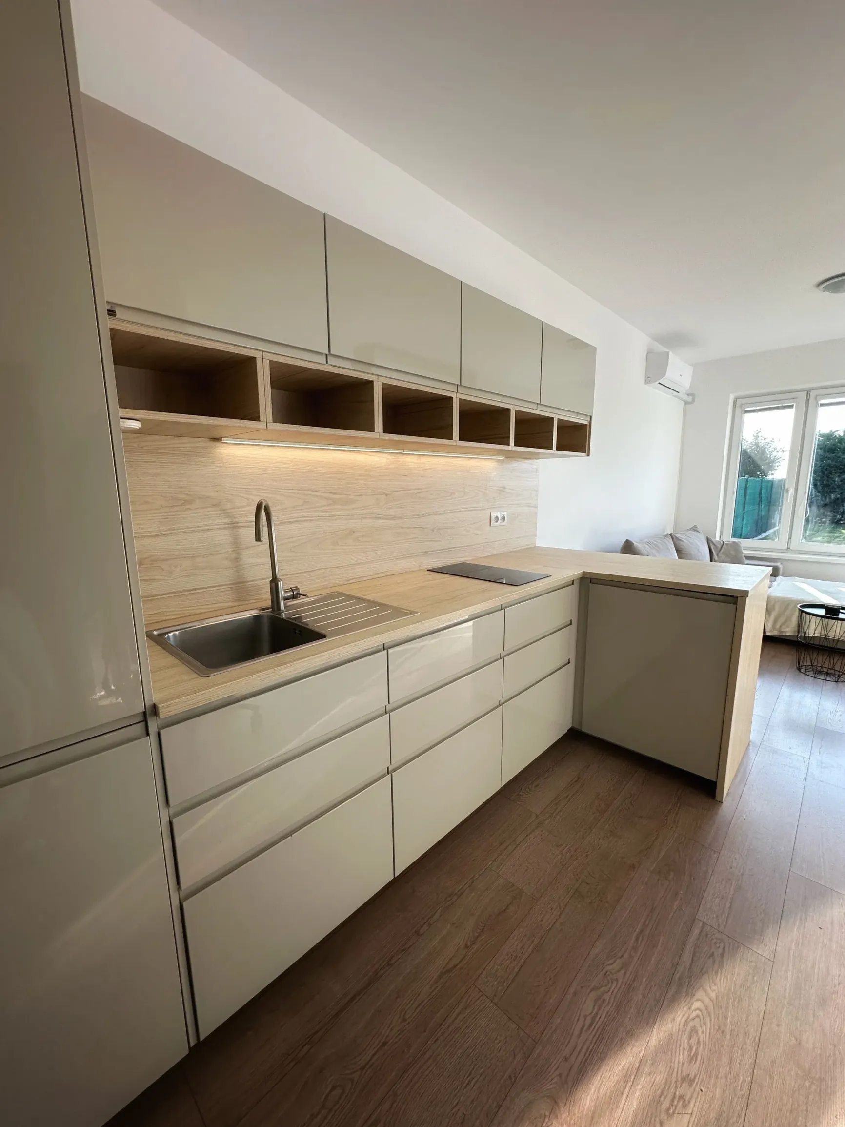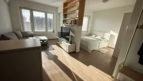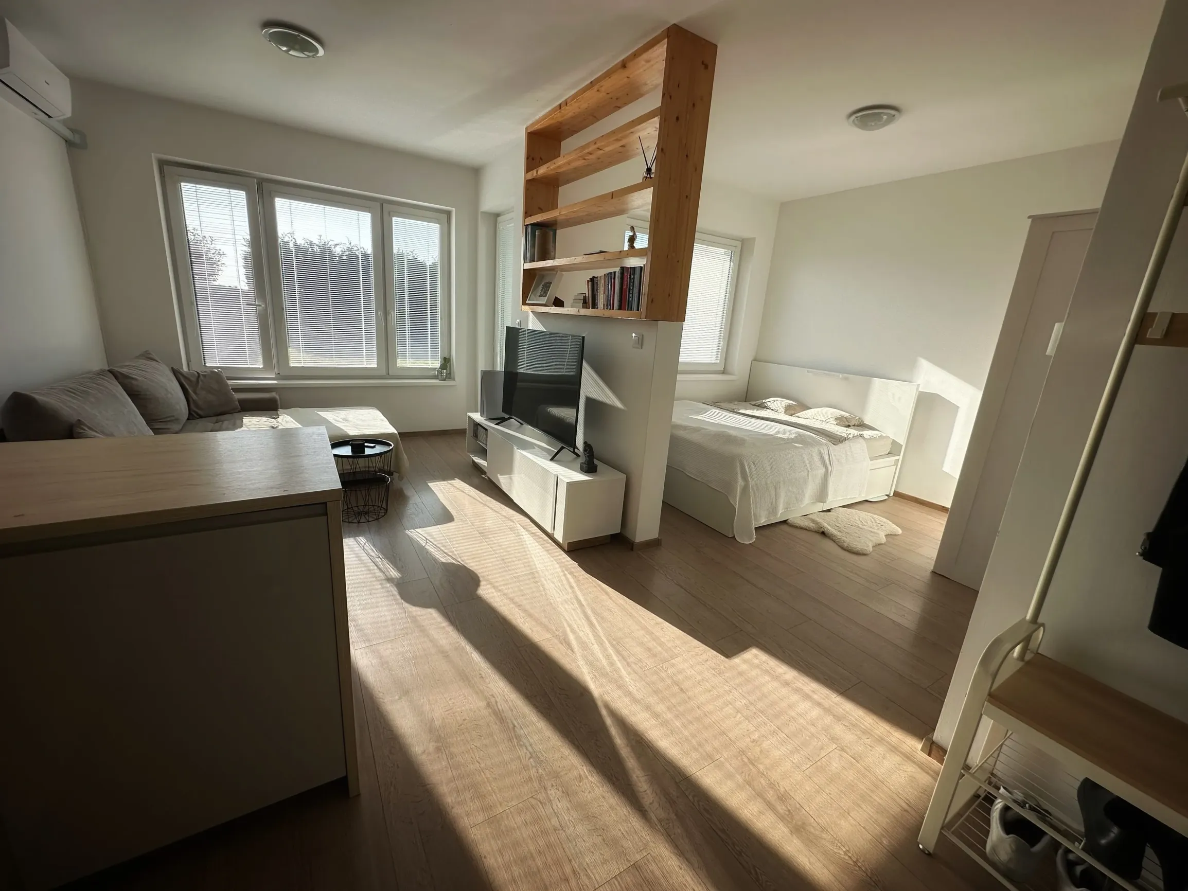 Byt je orientovaný na juhovýchod, čo zabezpečuje dostatok prirodzeného svetla počas celého dňa. Dispozícia bytu zároveň umožňuje jednoduchú úpravu na plnohodnotný 2-izbový byt – spálňa je čiastočne oddelená stenou a stačí doplniť posuvné dvere.