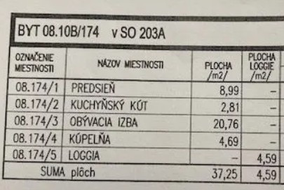 Podlahová plocha: 37,25 m2 (loggia 4,59m2)
