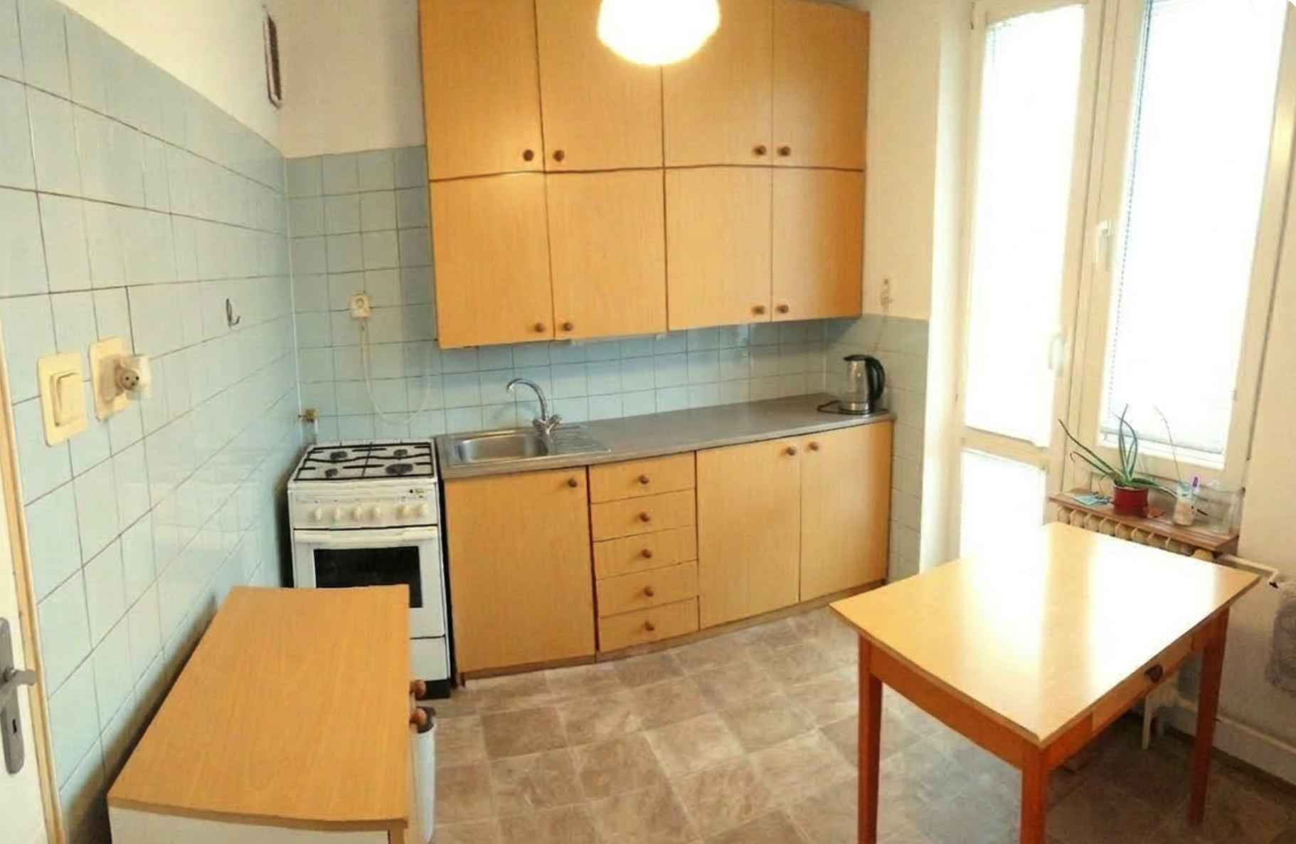 dispozícia: 2 nepriechodné izby (21 m² a 16 m²), samostatná kuchyňa, kúpeľňa a oddelené WC