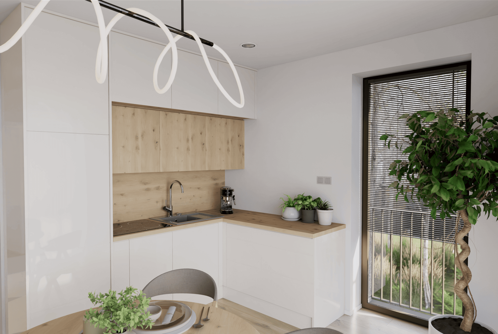 Predstavte si bývanie, kde sa interiér prirodzene prepája s exteriérom a každý deň začína na slnečnom balkóne s atmosférou pokoja a čerstvého vidieckeho vzduchu.