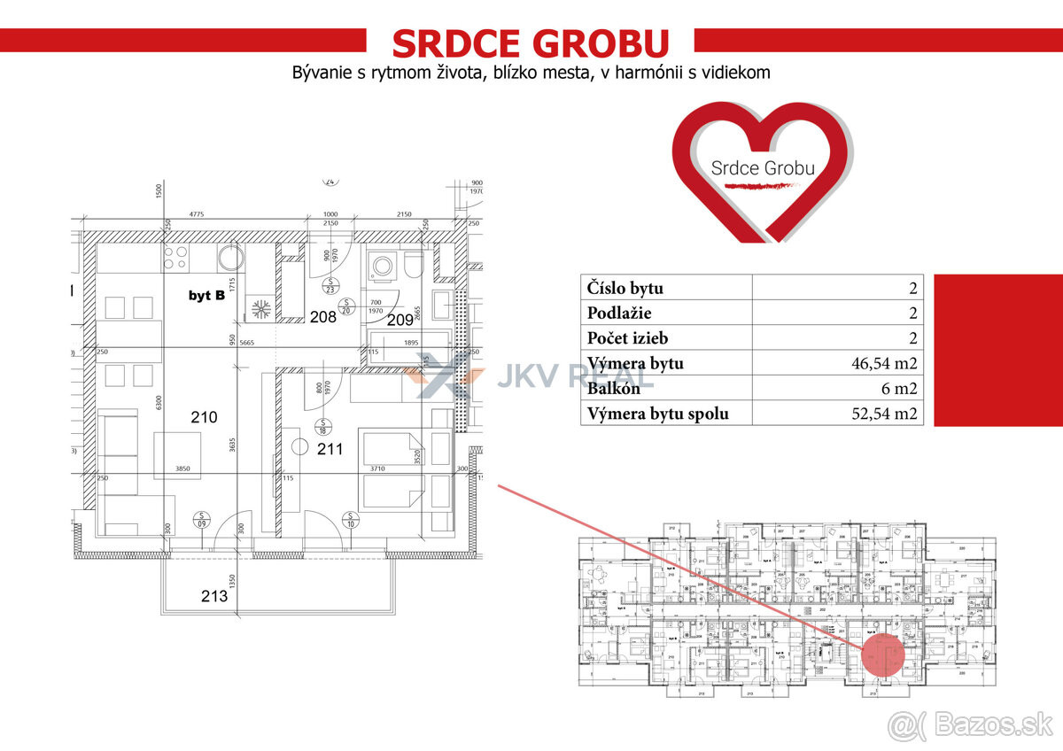 Tento moderný 2-izbový byt je súčasťou výnimočného rezidenčného projektu Srdce Grobu, ktorý vzniká priamo v centre obce Veľký Grob. Projekt prináša bývanie s rytmom života — blízko mesta, no zároveň v harmónii s vidieckym pokojom a prírodou a to len 10 minút od mesta Senec.