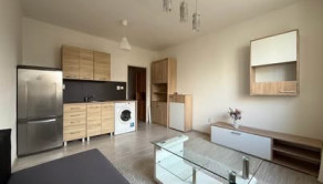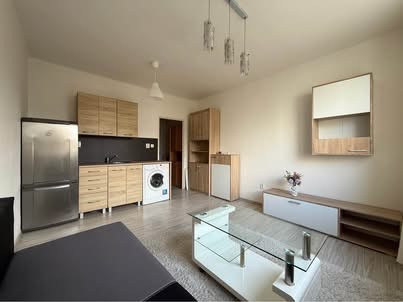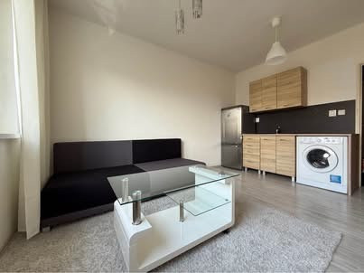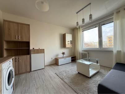 garsónka je kompletne zariadená – k dispozícii je kuchynský kút, chladnička, mikrovlnná rúra, práčka a nábytok.