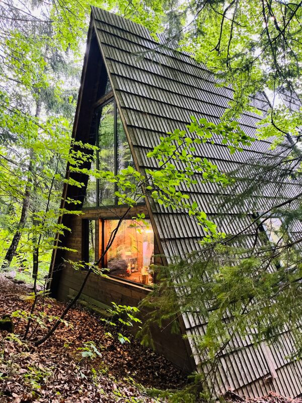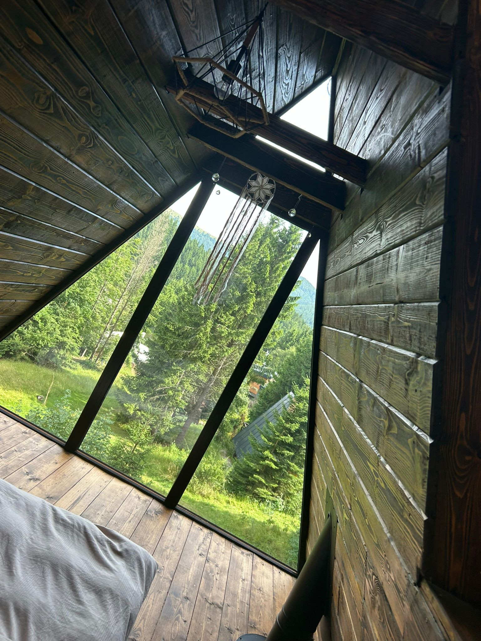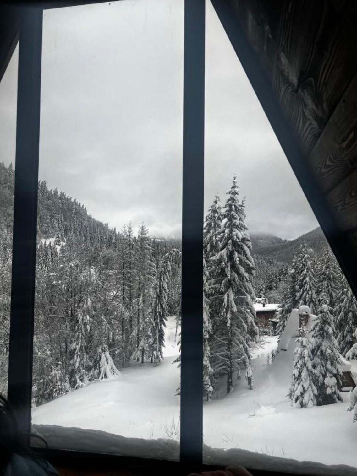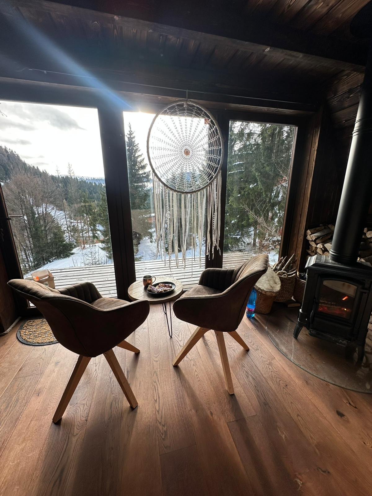 Presklené steny pred chatou aj vzadu – panoramatické výhľady