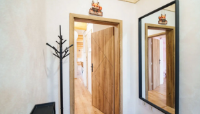 Interiér je kompletne zariadený a ladený do elegantného prírodného štýlu. Nájdete tu kombináciu minerálnych omietok a benátskych štukov, ktoré dodávajú priestoru jedinečný charakter. Kuchyňa je vybavená vstavanými spotrebičmi vrátane elektrickej rúry a varnej dosky.