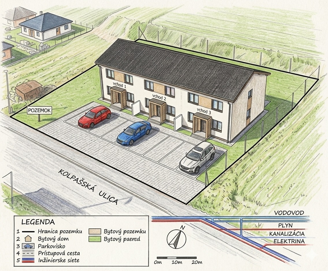 Inžinierske siete: Siete sú v priamom dosahu pri ceste (v blízkosti pozemku), čo uľahčuje proces budúceho pripojenia.💡