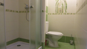 Dispozične pozostáva z izby, kuchyne a kúpeľne s toaletou. V rohovej kuchyni sa nachádza chladnička a práčka. Izba je vybavená vstavanou skriňou a parketovou podlahou, ktorá dodáva priestoru príjemný charakter.