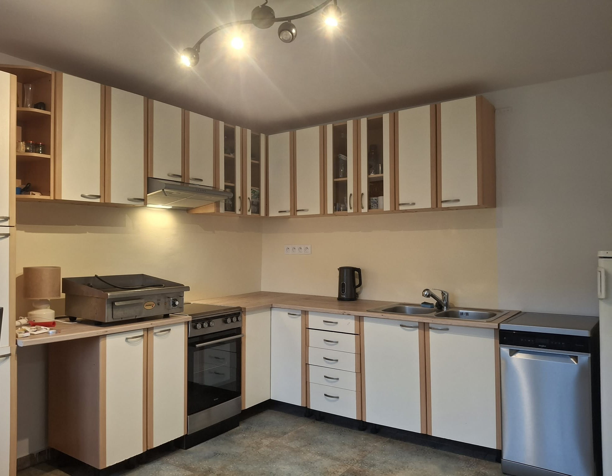 Dom je toho času v prerábke, okná, zateplenie, jedna časť je komplet dokončená, podlahy, kúpelňa s WC, kuchyňa....prebieha rekonštrukcia v druhej, poschodovej časti a rekonštrukcia dvora, osvetlenie..