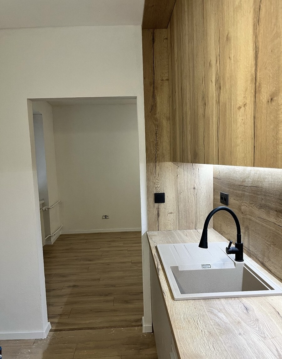 Rekonštrukcia zahŕňala výmenu podlahy, inertierové dvere, sanita,dlažby,kúpeľnu,kuchyňa …a iné