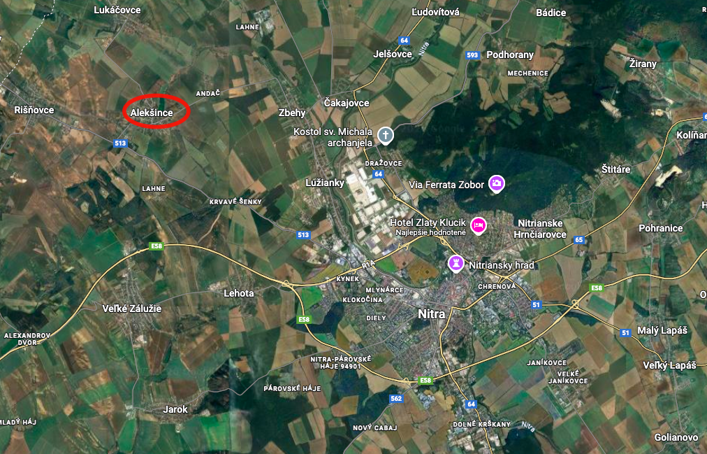 Pozemok má veľmi dobrú polohu hneď na začiatku obce Alekšince. Svahovitá povaha zaručuje pekné výhľady na okolie. Alekšince sú veľmi výhodná a plne vybavená obec. Dostupnosť do krajského mesta Nitra je do 15 min. Pozemok je zároveň posledný voľný v novej, modernej komunite.