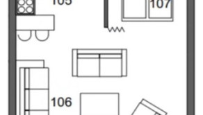 Byt má vstupnú chodbu, obývaciu izbu prepojenú s kuchyňou a pracovňou, spaciu miestnosť, kúpeľňu so sprchovacím kútom a samostatné WC. V byte je nainštalovaná klimatizácia, podlahové kúrenie a má vlastný plynový kotol. Okná sú orientované na západ.