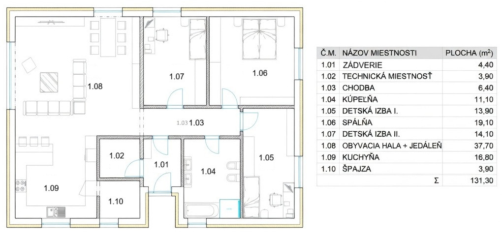Úžitková plocha: 131 m² + terasa 18 m²