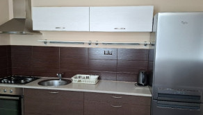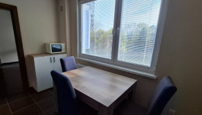 plne vybavená kuchyňa (chladnička, rúra, varná doska, digestor, mikrovlnka, rýchlovarná kanvica) s jedálenským stolom