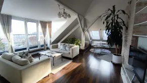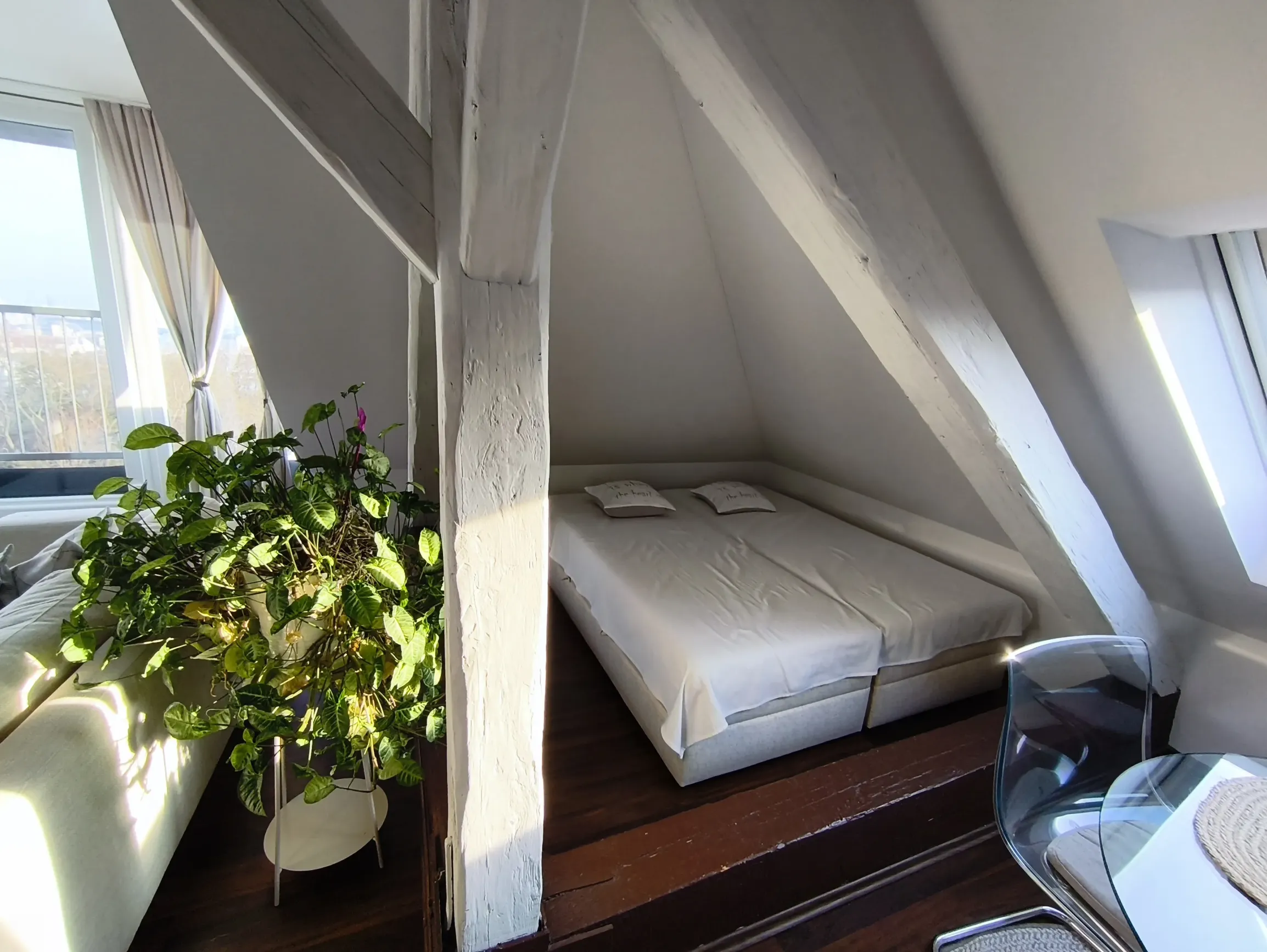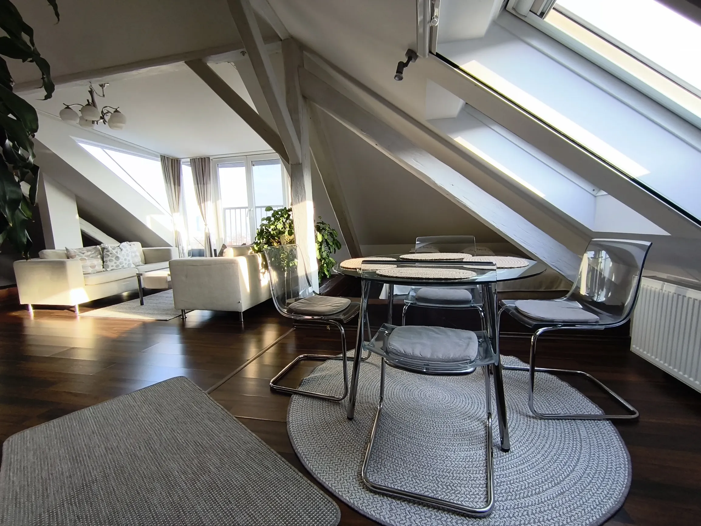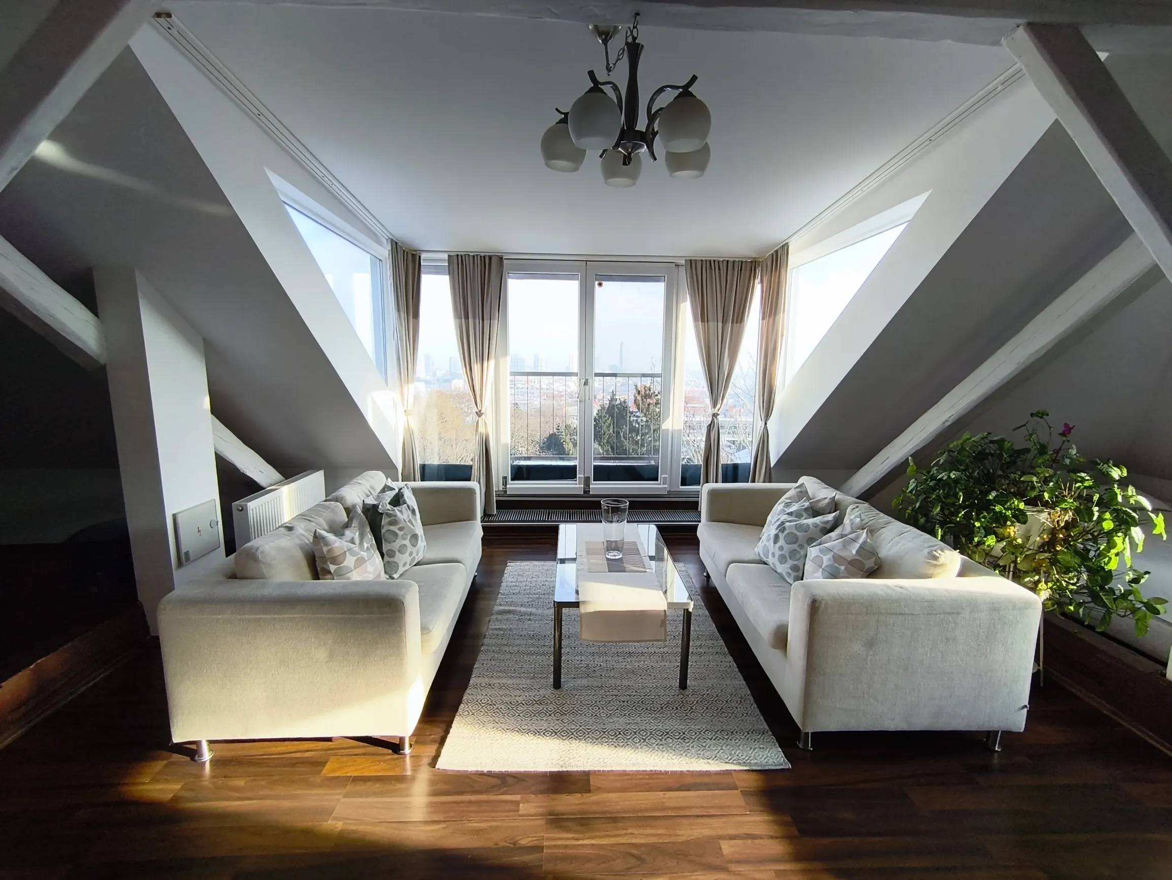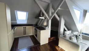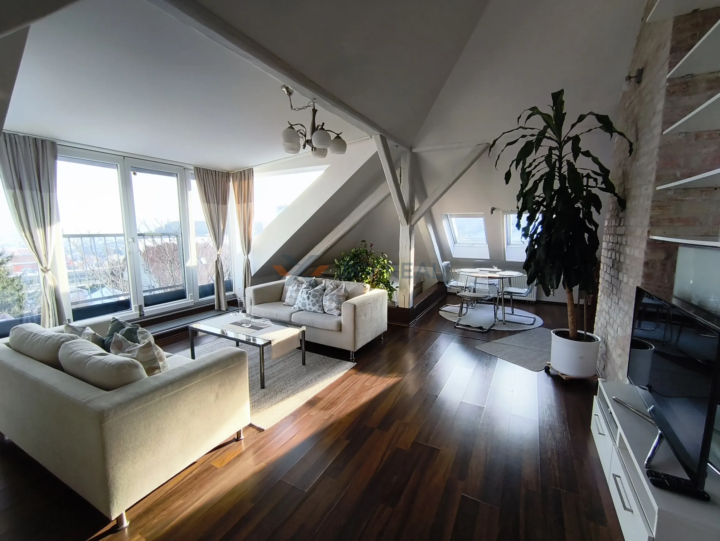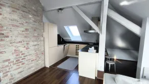 Ponúkame na prenájom moderný 2 izbový podkrovný byt s francúzskym balkónom a garážou v tichej lokalite Starého Mesta na Červeňovej ulici v rezidenčnej štvrti Palisády.