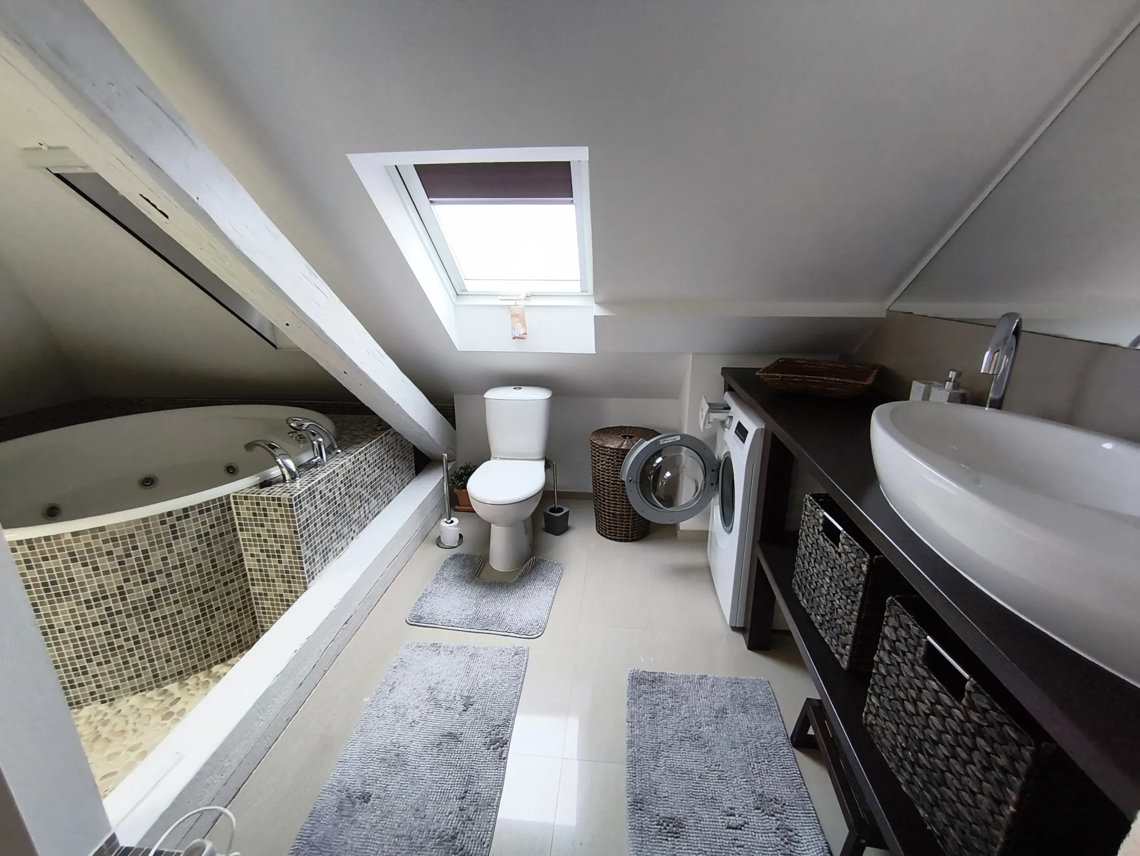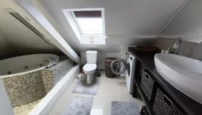 plastové okná, v obývačke a izbách plávajúca podlaha, v spálni veľká šatníková skriňa a manželská posteľ, v kúpeľni hydromasážna vaňa, umývadlo, byt je klimatizovaný, k dispozícii je aj garáž a možnosť využívania záhrady.