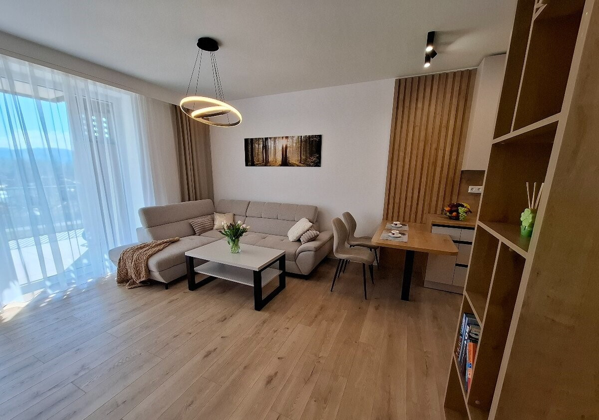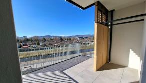 • Unikátna dispozícia: Rozľahlá terasa s panoramatickým výhľadom na Nízke Tatry a Kráľovu hoľu. Terasa je prístupná samostatne z obývacej izby aj zo spálne.