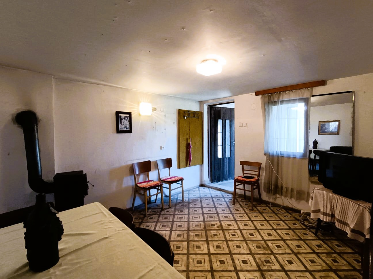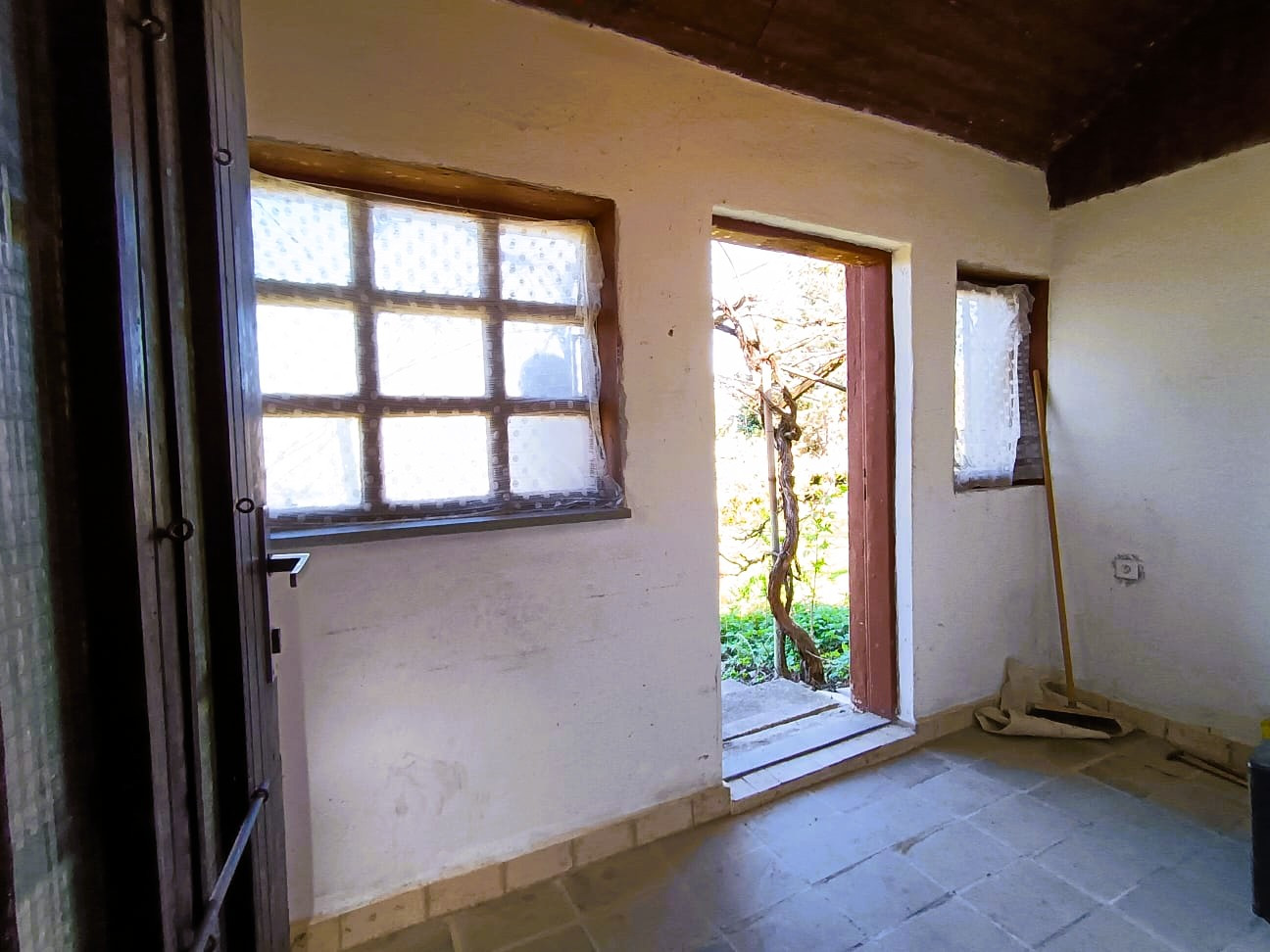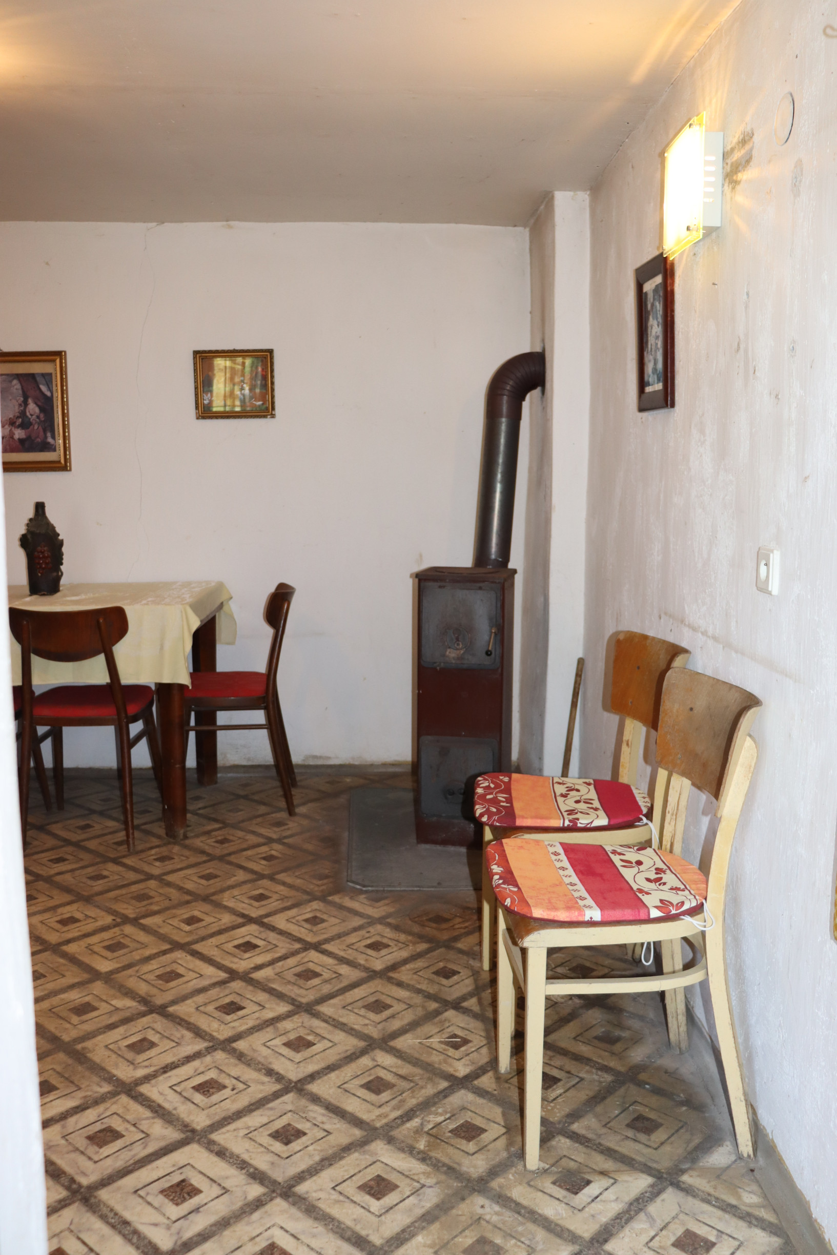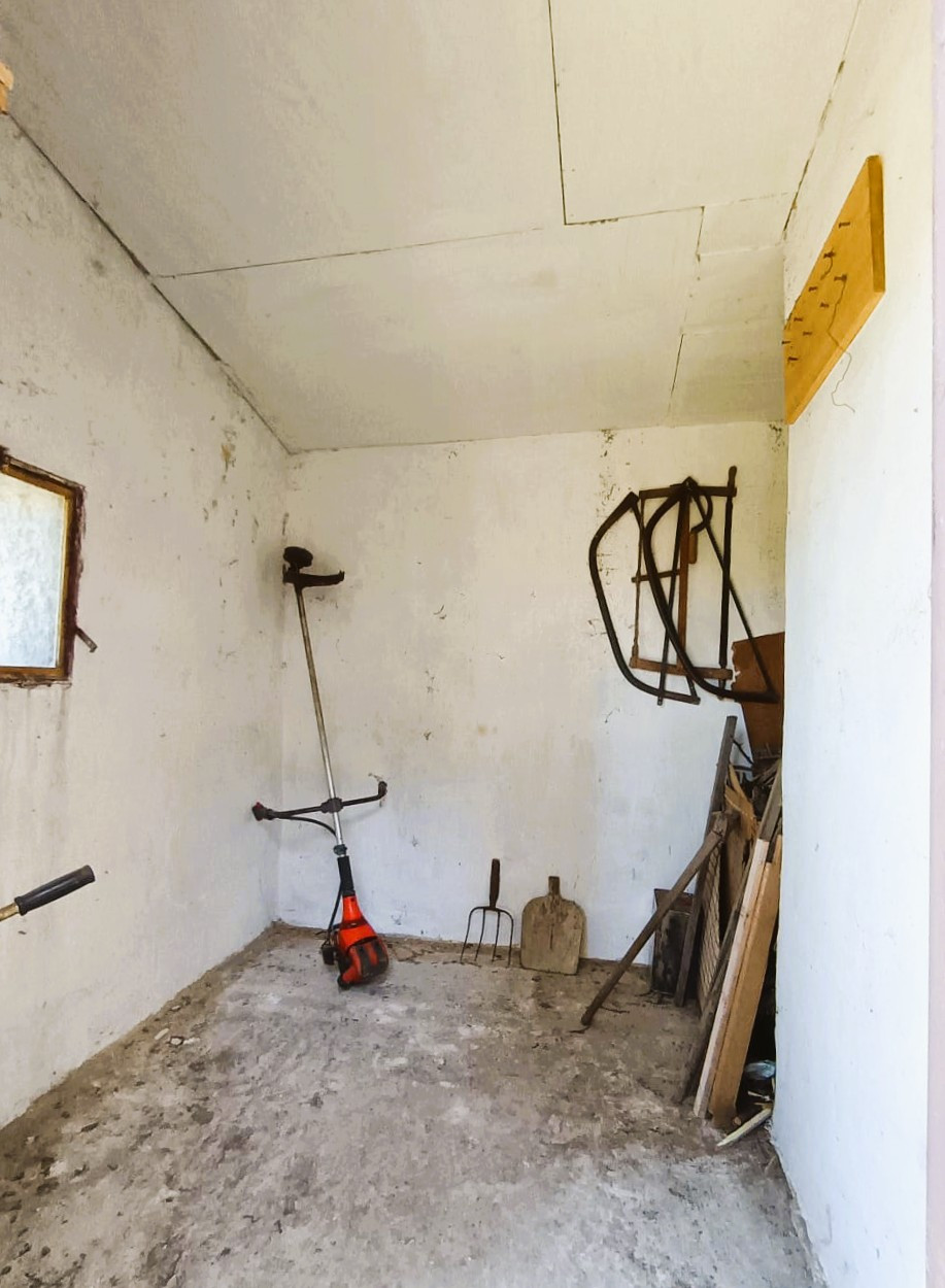 - Stavba so súpisným číslom: Viničný dom disponuje súpisným číslom, čo umožňuje prihlásenie na trvalý pobyt v tejto lokalite. Stavba so zastavanou plochou 37 m² je kvalitnej murovanej konštrukcie so šikmou pultovou strechou. Celková úžitková plocha nehnuteľnosti (vrátane príslušenstva) predstavuje 50 m². V prednej časti je predsieň a priestranná obytná miestnosť, vykurovaná kachľami na pevné palivo s odvodom spalín do murovaného komína. V zadnej časti je prešovňa so schodiskom do kamennej klenbovej pivnice, ktorá má v prednej časti oddelenú samostatnú miestnosť na uskladnenie zeleniny a ovocia. Na pozemku sa nachádza ešte menšia hospodárska budova - murovaný sklad na náradie a murované suché WC s odvetrávaním.