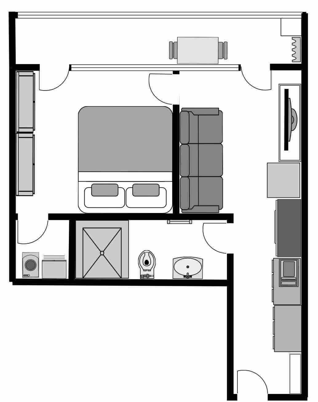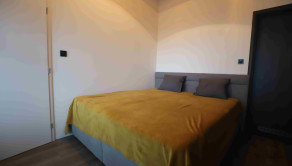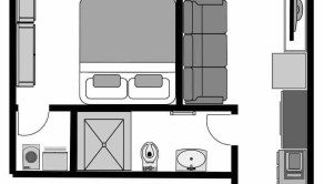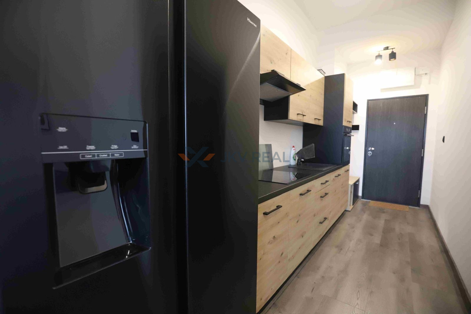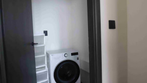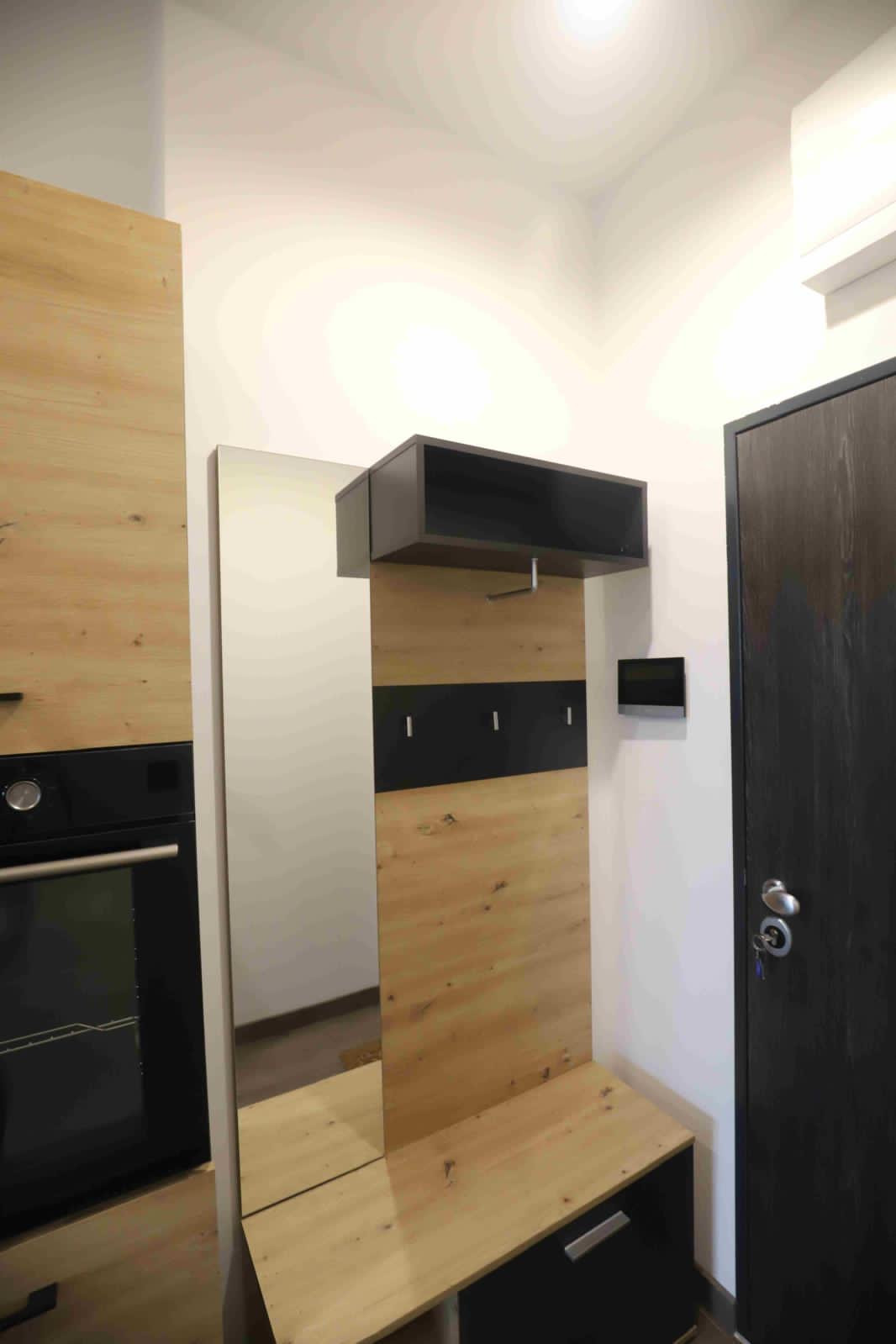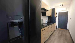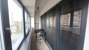 Dispozícia bytu je praktická a premyslená – vstupná predsieň vás prirodzene prevedie do kuchyne spojenej s obývačkou. Odtiaľ sa dostanete na priestrannú loggiu. Spálňa ponúka množsvo úložného priestoru vďaka rolldoor skrini a ďalšej malej miestnosti, ktorá sa dá využiť napríklad ako šatník.