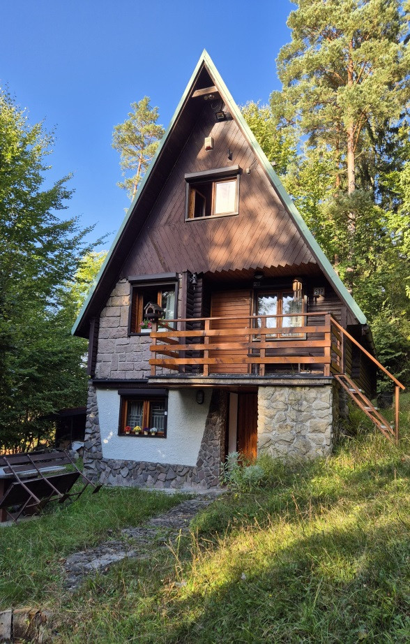Chata je ideálna na víkendový oddych, relax mimo mesta. Najväčšou výhodou je práve výhľad priamo na les, ktorý vytvára pocit súkromia a kontaktu s prírodou. Dispozične má prízeme, poschodie a druhé poschodie.