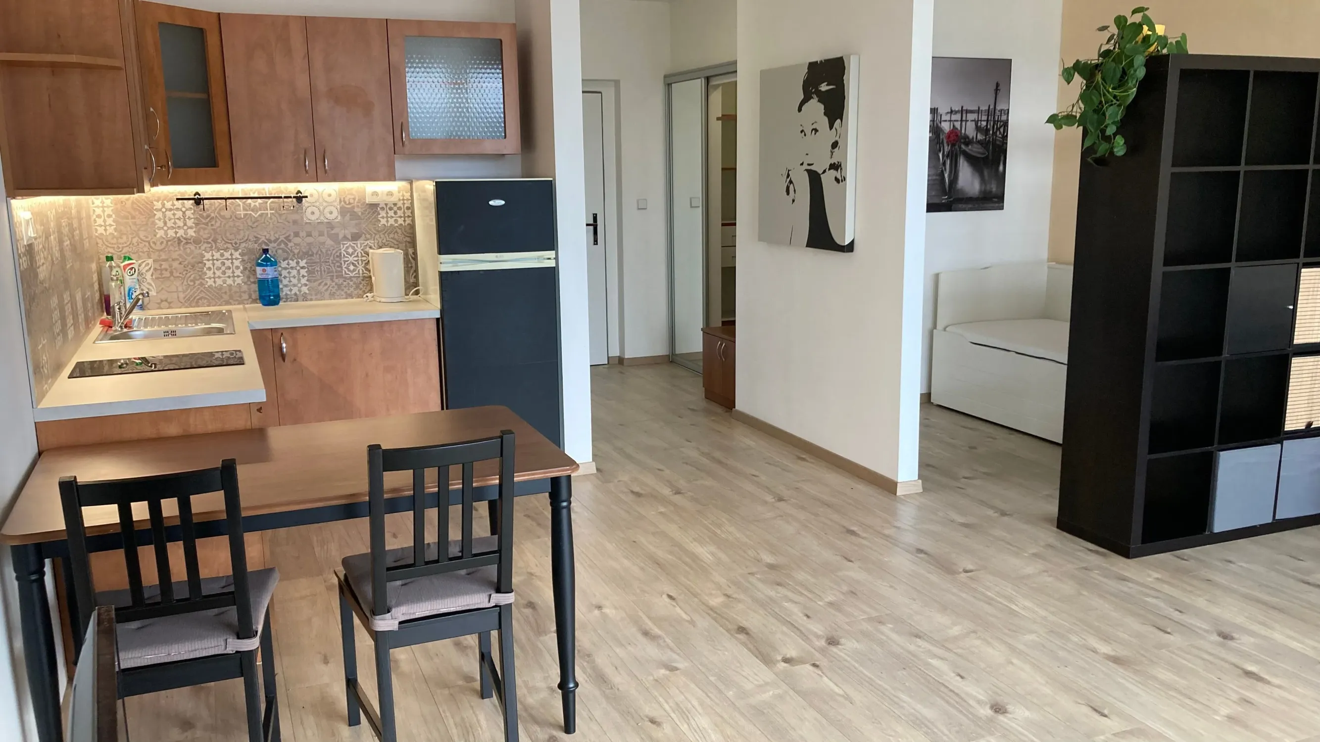 plastové okná, v izbe plávajúca podlaha, kúpeľni sprcha, umývadlo. Byt je zariadený ako na fotkách. Internet a TV po dohode. Parkovanie k bytu nie je k dispozícii.