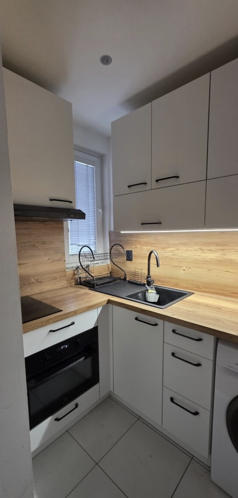 Dispozícia bytu je praktická, pričom kuchyňa je síce menšia, no pôsobí útulne a funkčne. Celý byt vytvára príjemnú atmosféru a je ideálnou voľbou pre jednotlivca alebo pár, ktorí hľadajú pohodlné bývanie.