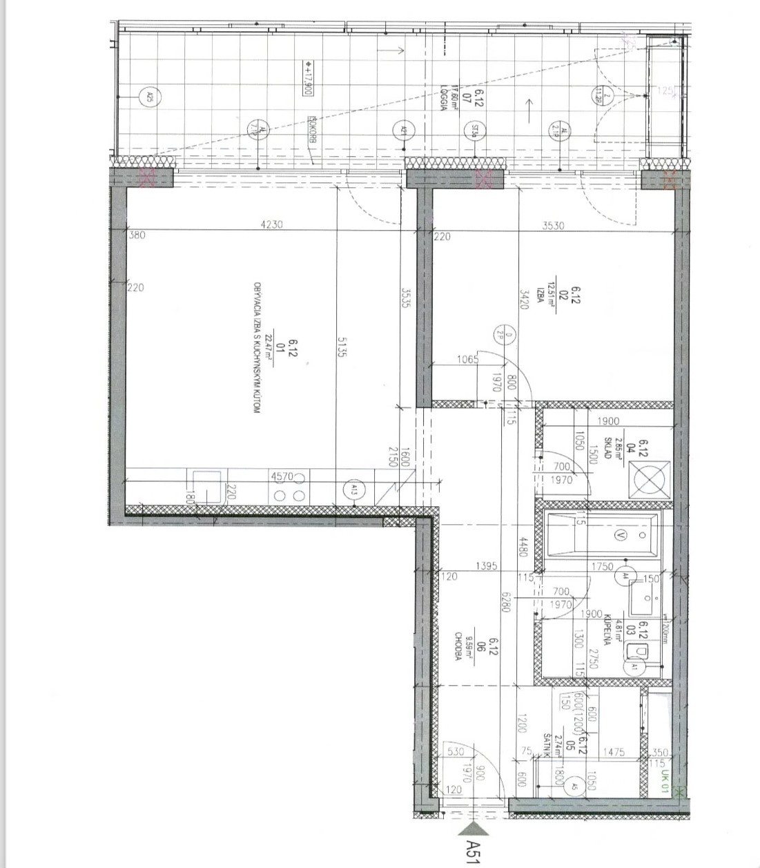- obývacia izba prepojená s kuchyňou a výstupom na priestrannú loggiu