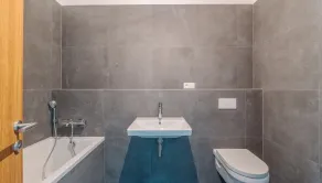 Štandard bytu zahŕňa podlahové kúrenie v celom apartmáne, predprípravu na klimatizáciu a exteriérové žalúzie, čo zabezpečuje vysoký komfort bývania počas celého roka.
