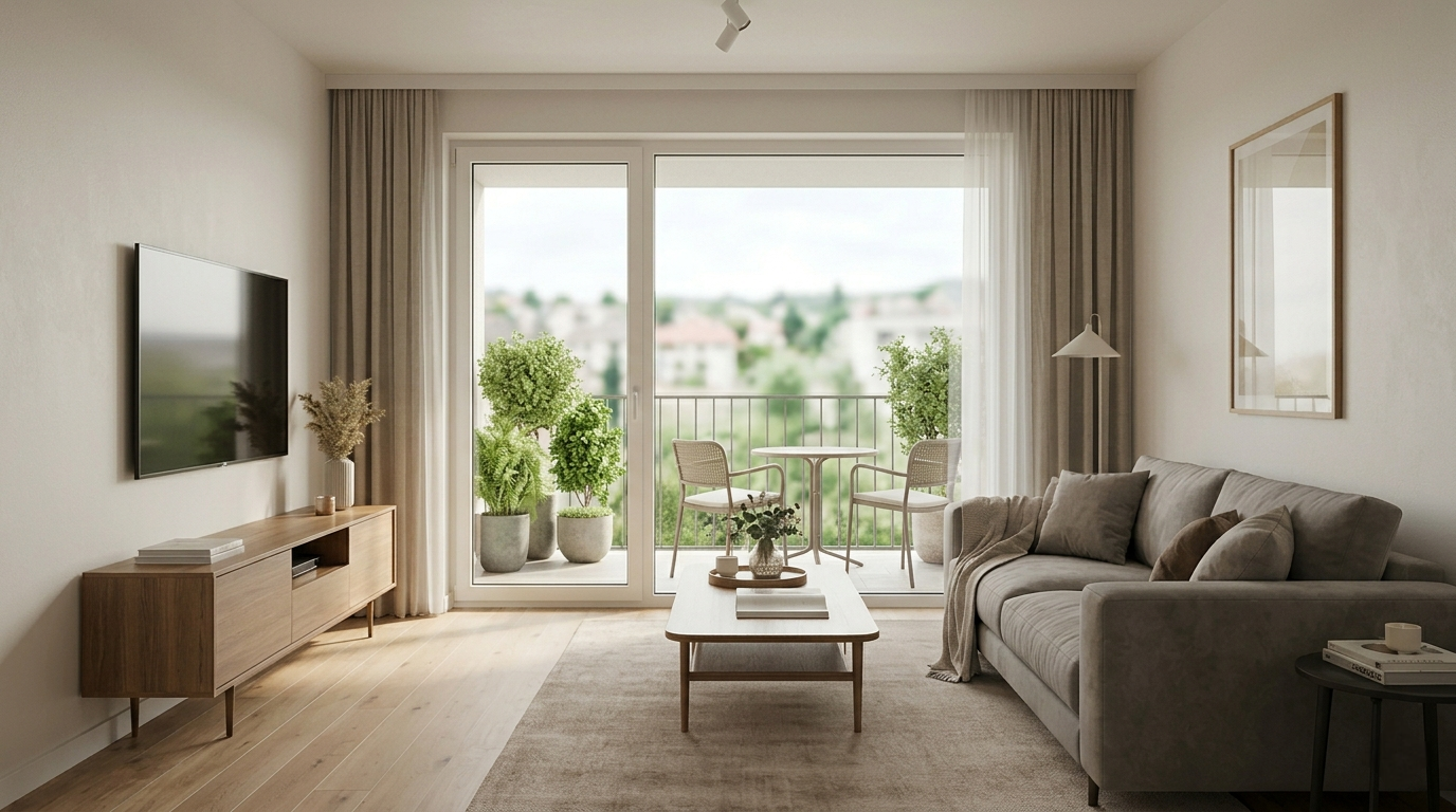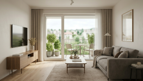Srdce domova: Priestranná, presvetlená obývacia izba, z ktorej vyjdete priamo na balkón – ideálne miesto na rannú kávu.