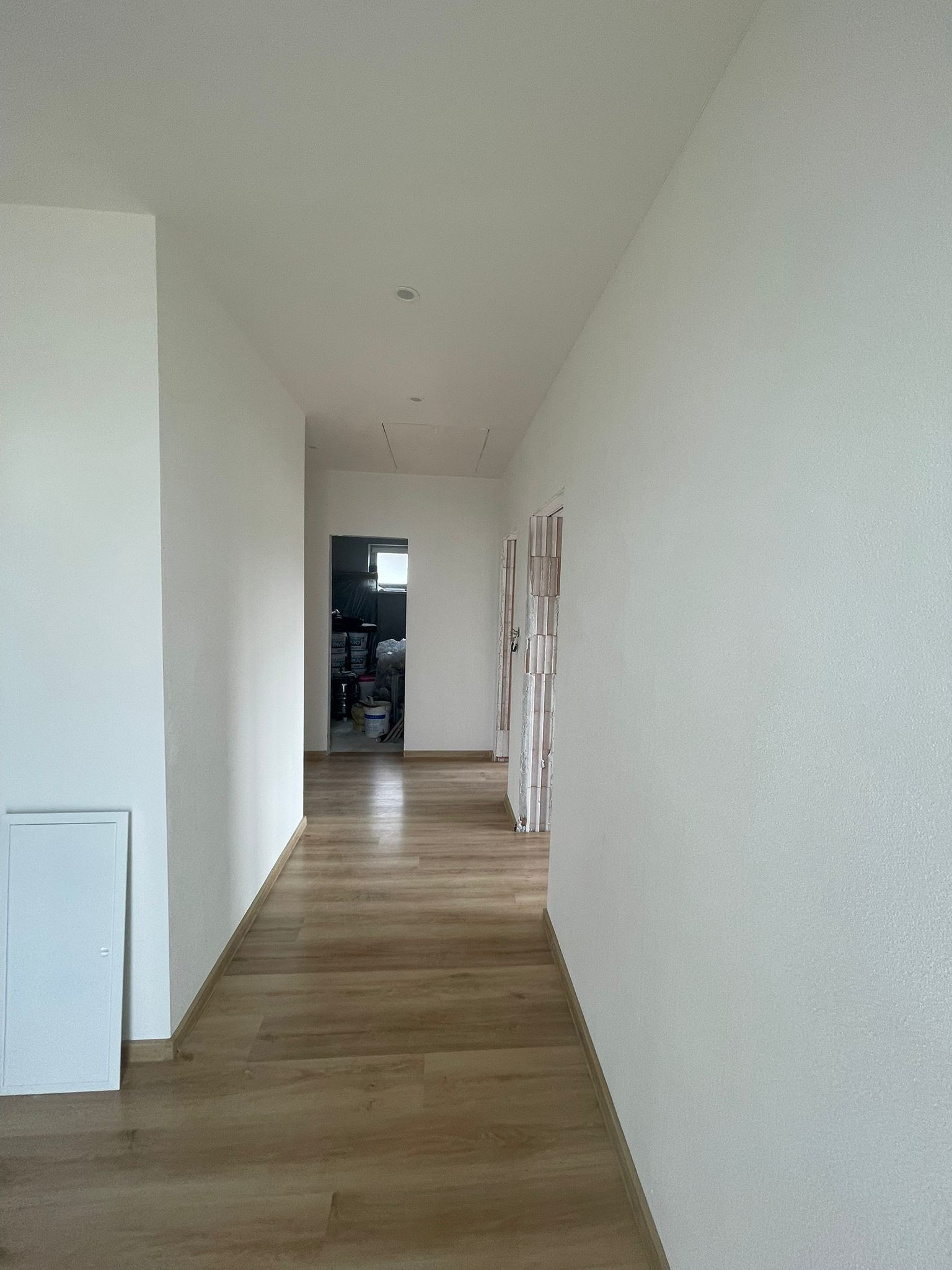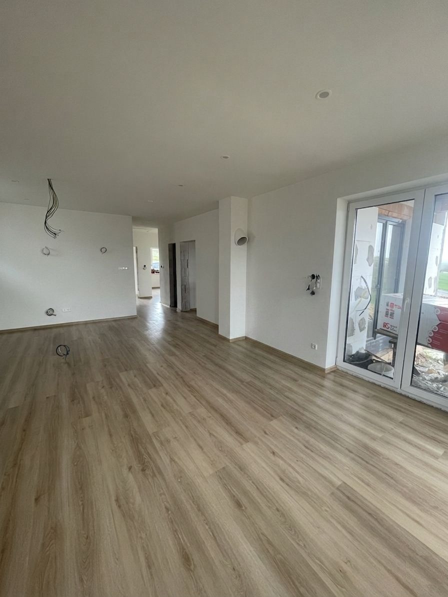 Dom je aktuálne vo fáze dokončovania s plánovaným dokončením do leta. V interiéri sú už položené podlahy, v cene sú zahrnuté interiérové dvere so zárubňami a kompletné kúpeľne, ktoré budú dokončené podľa predstáv budúceho majiteľa. Fasáda bude ukončená silikátovou omietkou.