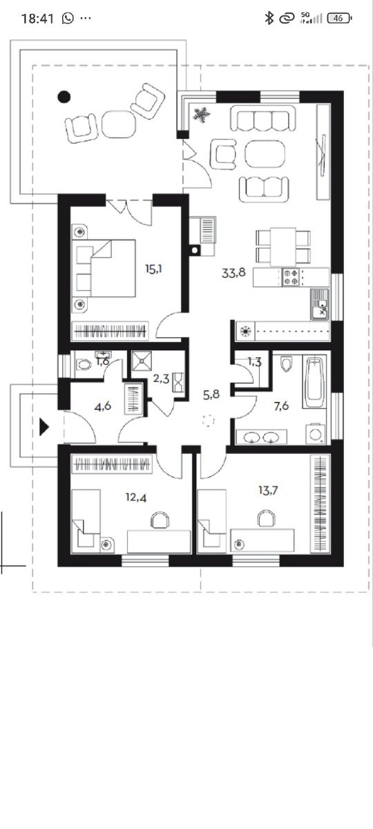 Dispozične dom ponúka premyslené bývanie pre rodinu – tri samostatné izby a priestrannú obývaciu izbu prepojenú s kuchyňou, ktorá tvorí srdce celého domu. Práve z obývacej izby si vychutnáte nádherný výhľad na Krškanskú dolinu – výhľad, ktorý si jednoducho zamilujete každý deň. Súčasťou domu sú dve kúpeľne (jedna väčšia a jedna menšia), technická miestnosť využiteľná aj ako špajza a prestrešená terasa ideálna na oddych.