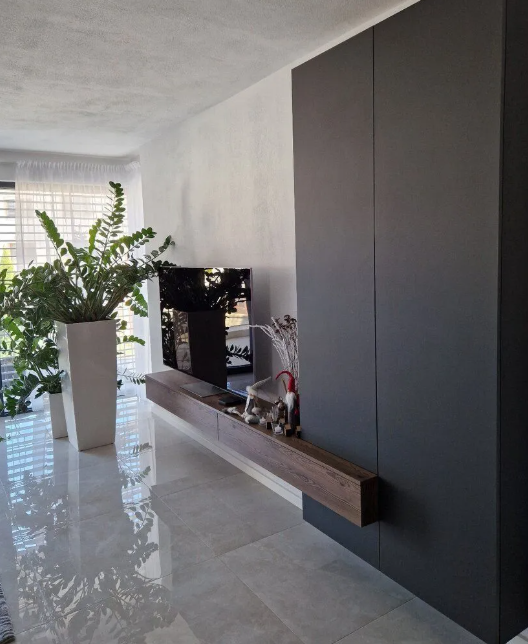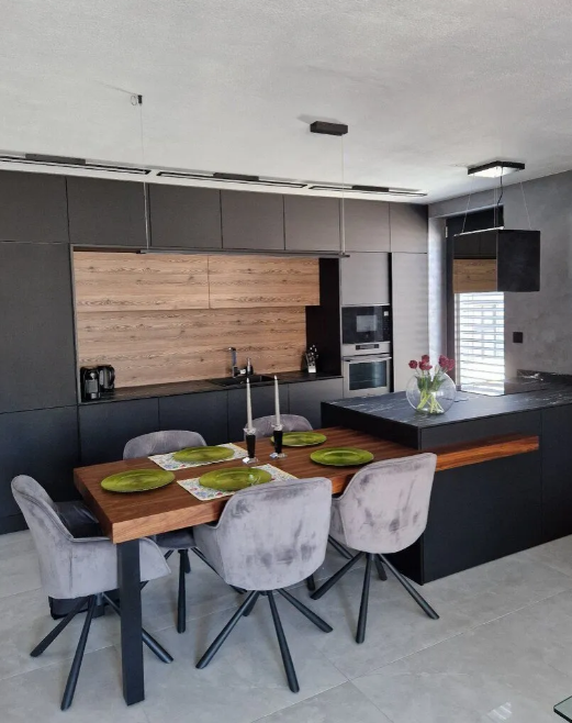 Byt s výmerou 95 m² + terasa 13 m² sa nachádza na 1. poschodí a je kompletne moderne zariadený nábytkom na mieru. Pôsobí veľmi vzdušne a svetlo, s dôrazom na komfort a praktickosť.