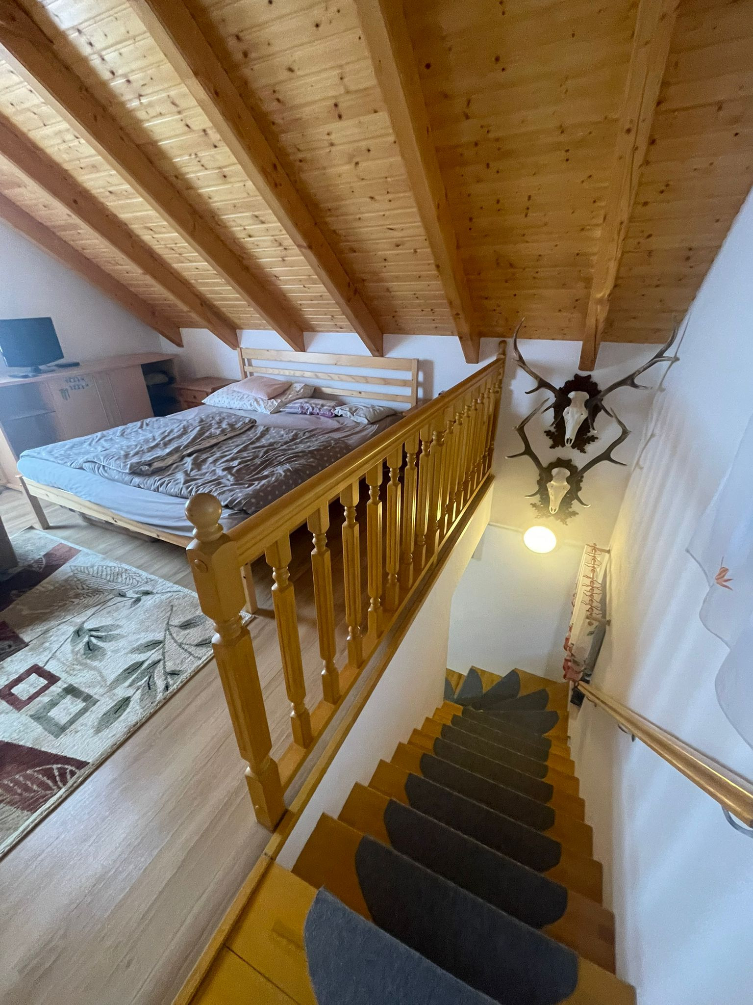dve podlažia s televízorom na každom z nich