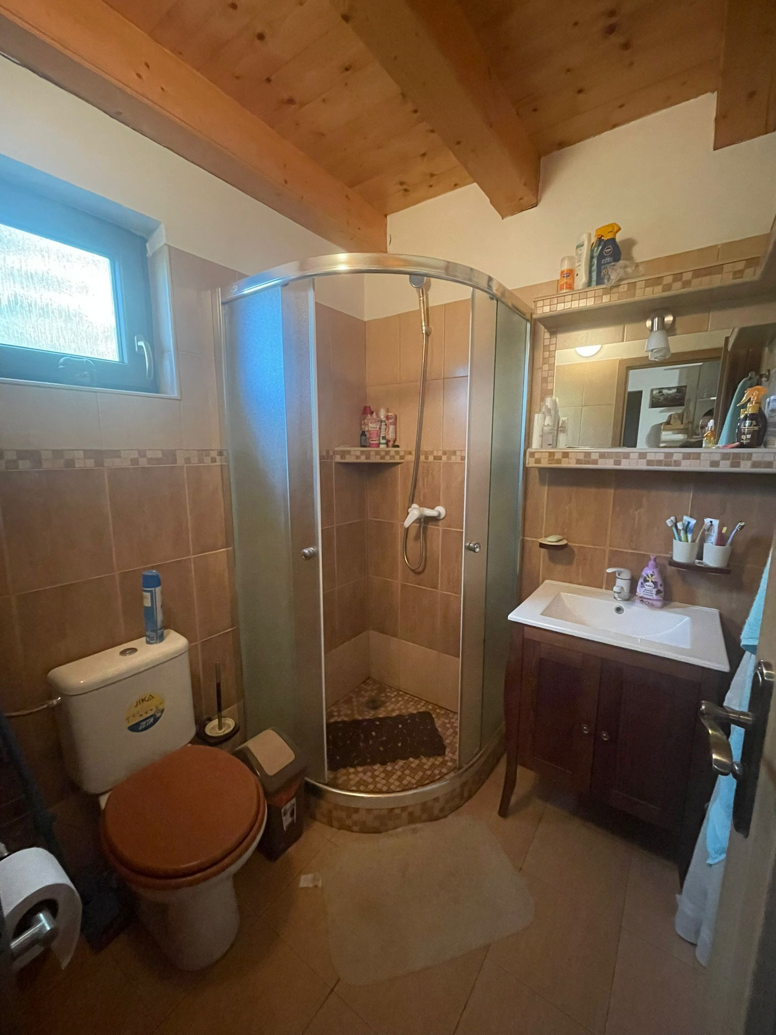 kúpeľňu so sprchovým kútom a WC